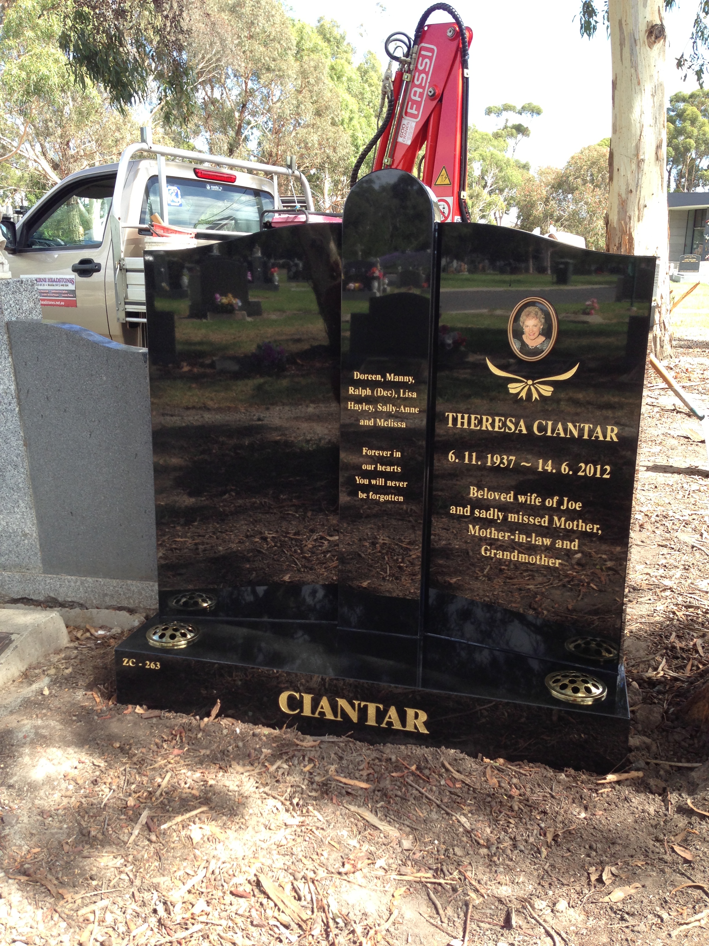 Which cemetery will the headstone be placed in?